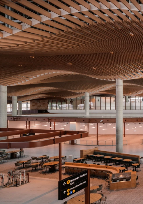TTW has been engaged for Structural, Civil, Facade and Construction Engineering services, including the design of the Baggage Handling System (BHS) support structures and Structural Peer Review. TTW also provided steel shop detailing services to accelerate and de-risk procurement pathways and cost certainty and structural design of the roof secondary steel structure as well as the internal border agency fitout and miscellaneous steelwork around the terminal, including the steelwork supporting the sandstone paneling around the terminal interior.